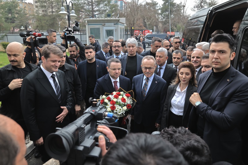 Cumhuriyet Başsavcımız Sayın Erdal KURUÇAY ve Adli Yargı İlk Derece Mahkemesi Adalet Komisyonu Başkanımız Sayın Erhan ÇAVUŞOĞLU tarafından çiçeklerle karşılanan Adalet Bakanımız Sayın Akın GÜRLEK, Diyarbakır Adliyesi şeref defterini de imzaladı.