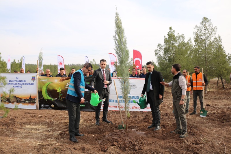 Düzenlenen etiklikte Cumhuriyet Başsavcı Vekili Özgür CELBEK yaptığı açıklamada, “Bugün burada bulunmamızın temel sebebi, hem doğaya karşı sorumluluğumuzun bir gereğini yerine getirmek hem de geleceğe umut bırakmaktır. Ağaç dikmek, sadece bir fidanı toprağa dikmek değildir; aynı zamanda yarınlara nefes olmaktır. Denetimli Serbestlik müdürlüğümüzce yürütülen çalışmalar, bireylerin topluma yeniden kazandırılması ve sosyal sorumluluk bilincinin geliştirilmesi açısından büyük önem taşımaktadır. Bu orman, sadece bugün değil, gelecek nesiller için de atılmış çok önemli bir adım olduğunu söylerken, ağaçlandırma çalışmalarının sürdürülebilir çevre ve doğal kaynak yönetiminin temel unsurunu oluşturduğunu, Diyarbakır ilinde oluşturulan ağaçlandırma sahalarında denetimli serbestliğe tabi ücretsiz kamu hizmeti yükümlülüğünü yerine getiren yükümlüler tarafından fidan dikimi ile ağaç ve saha bakım çalışmalarının süreklilik arz eder şekilde yürütüleceğini belirterek Yeşil bir Diyarbakır adına çaba gösterileceğini” belirtti.